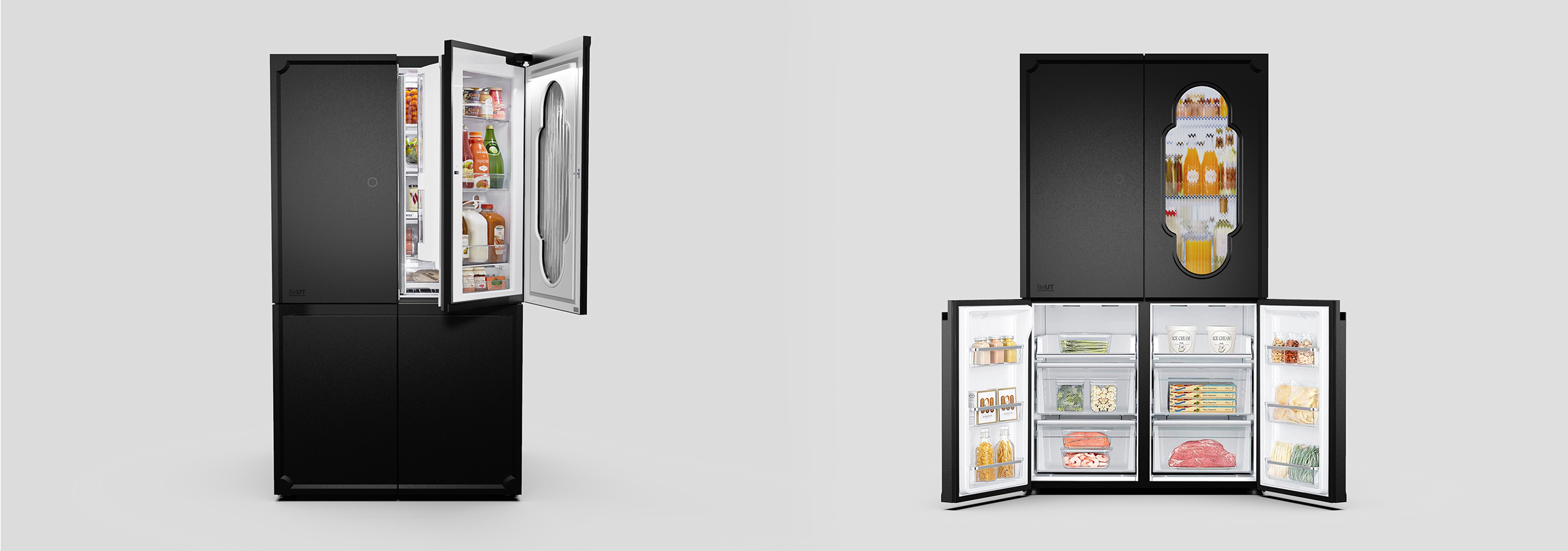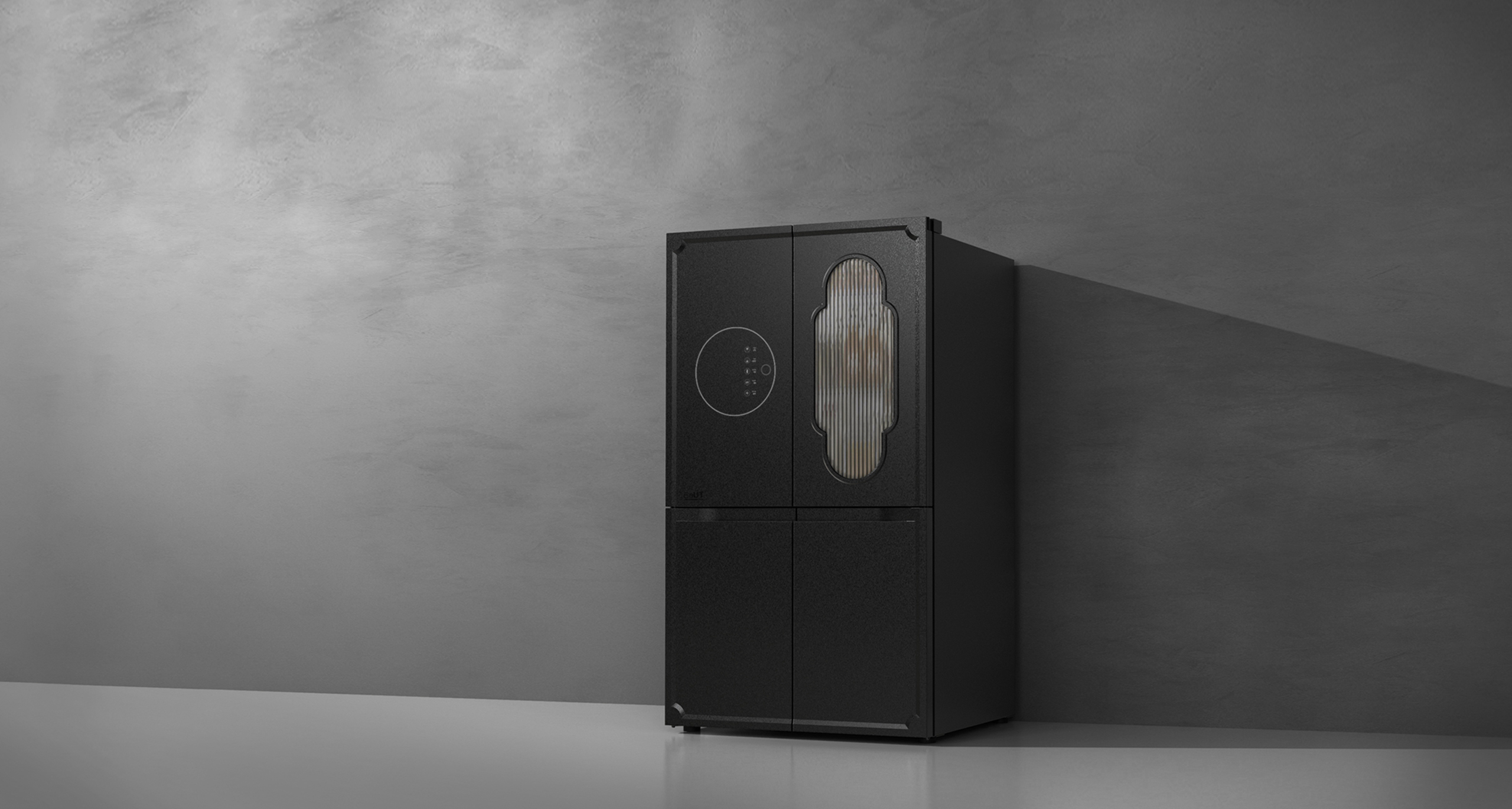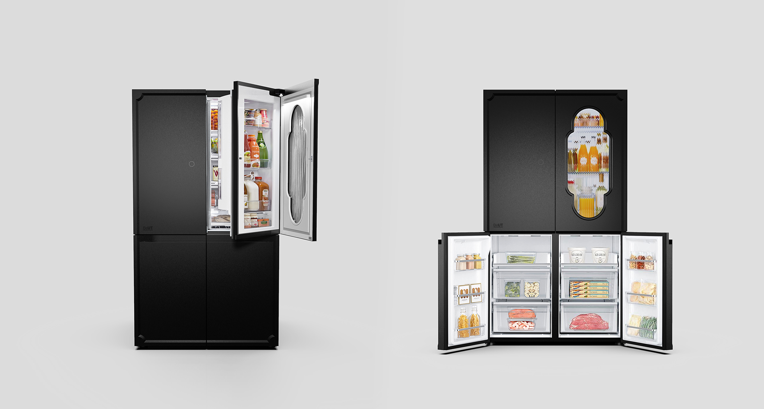 이 냉장고는 전통 한국 가구의 조형적 요소에서 영감을 받아 디자인되었습니다.
