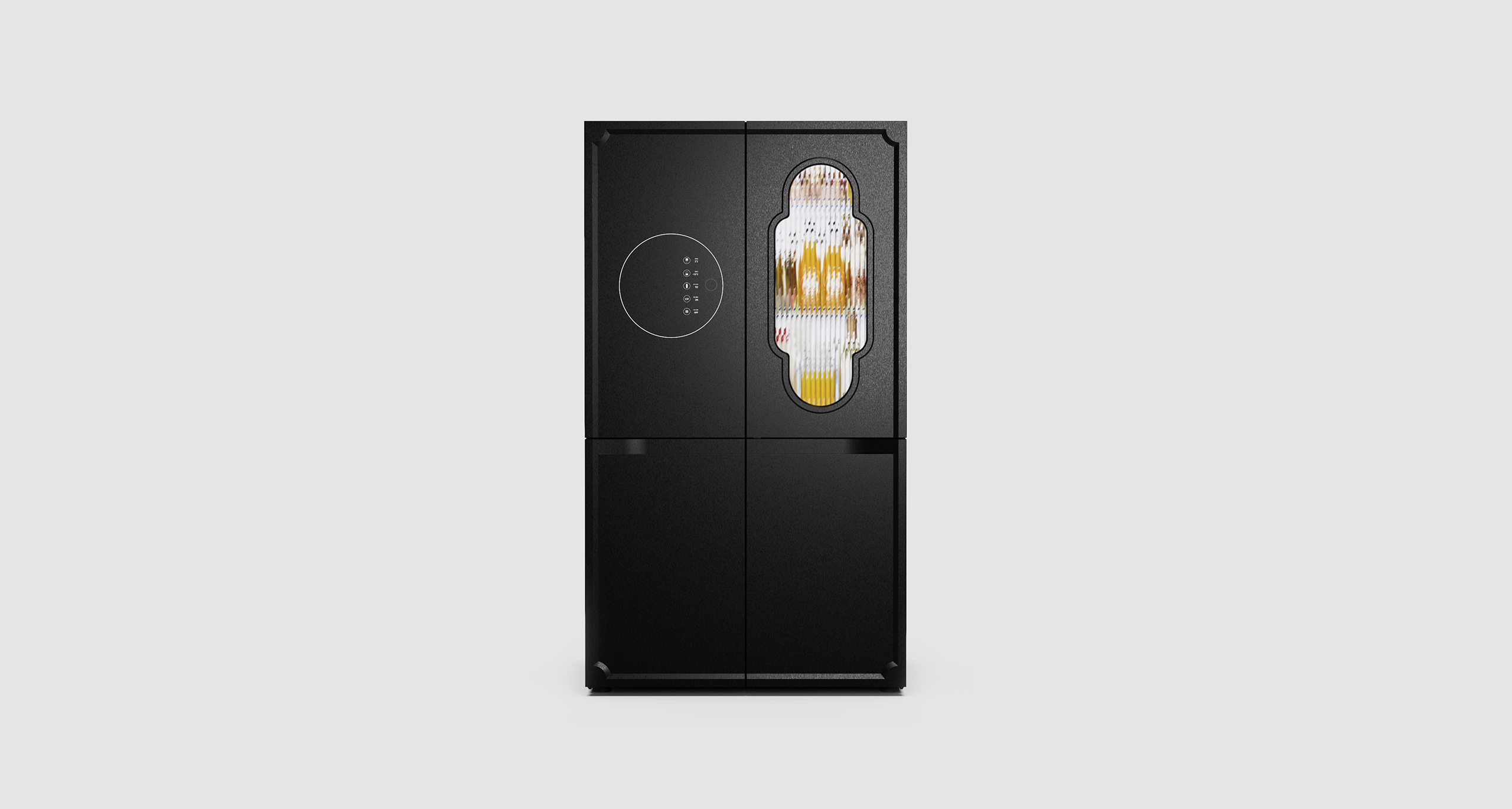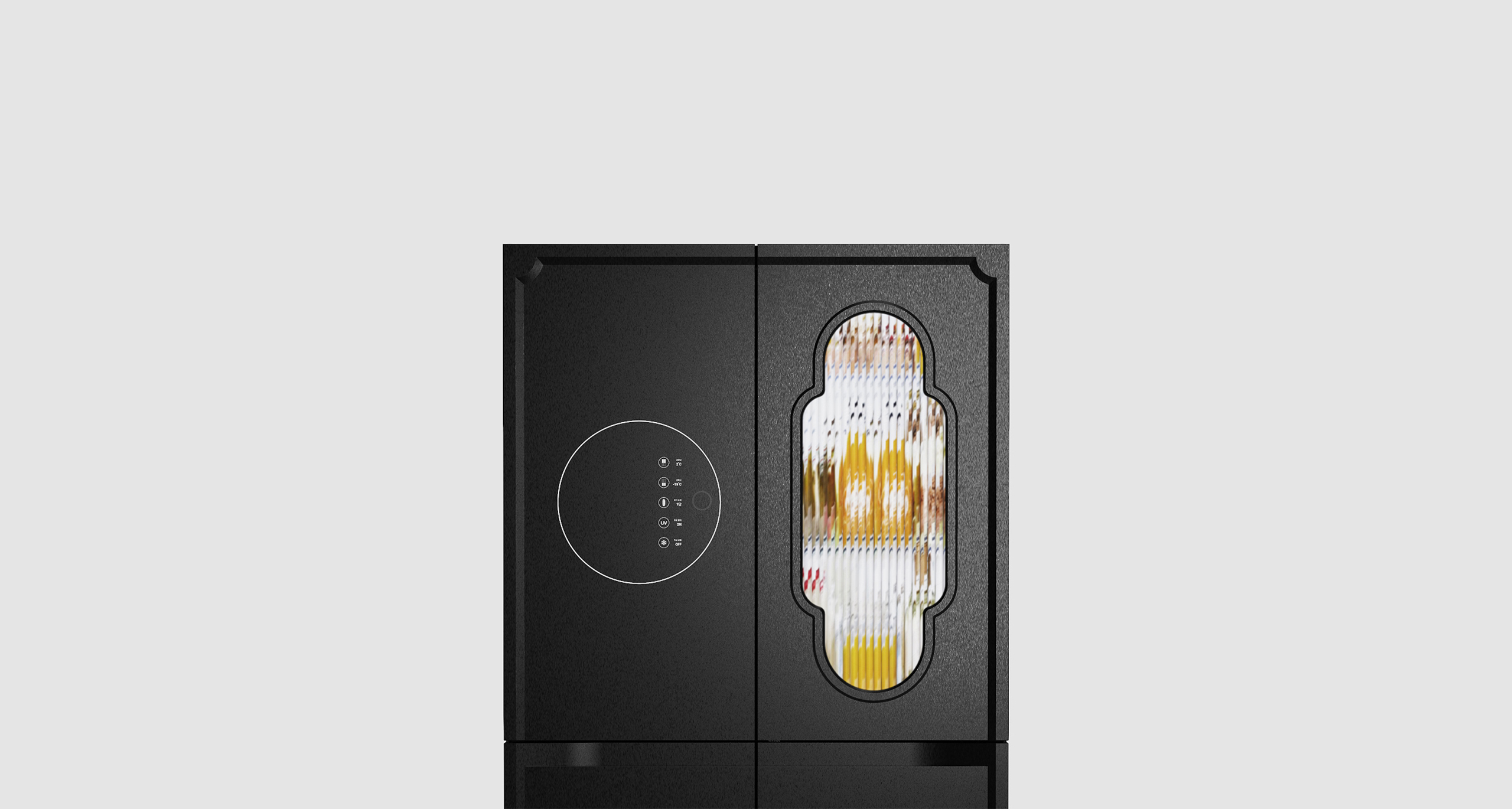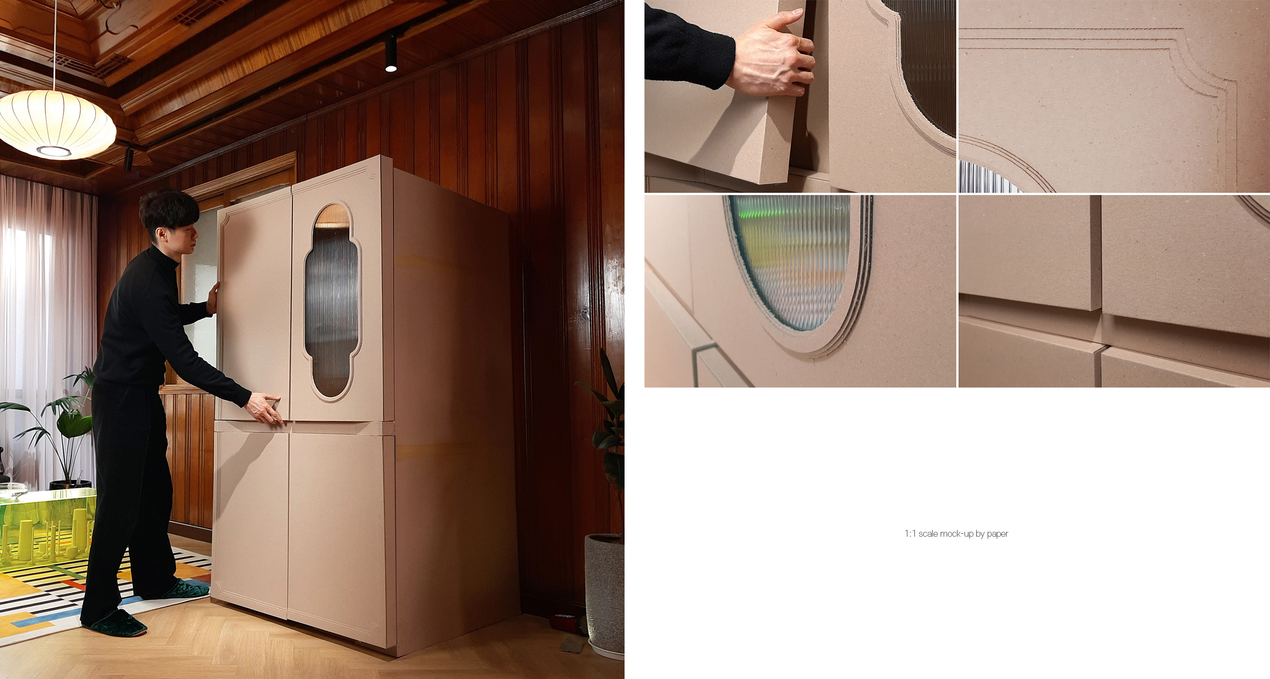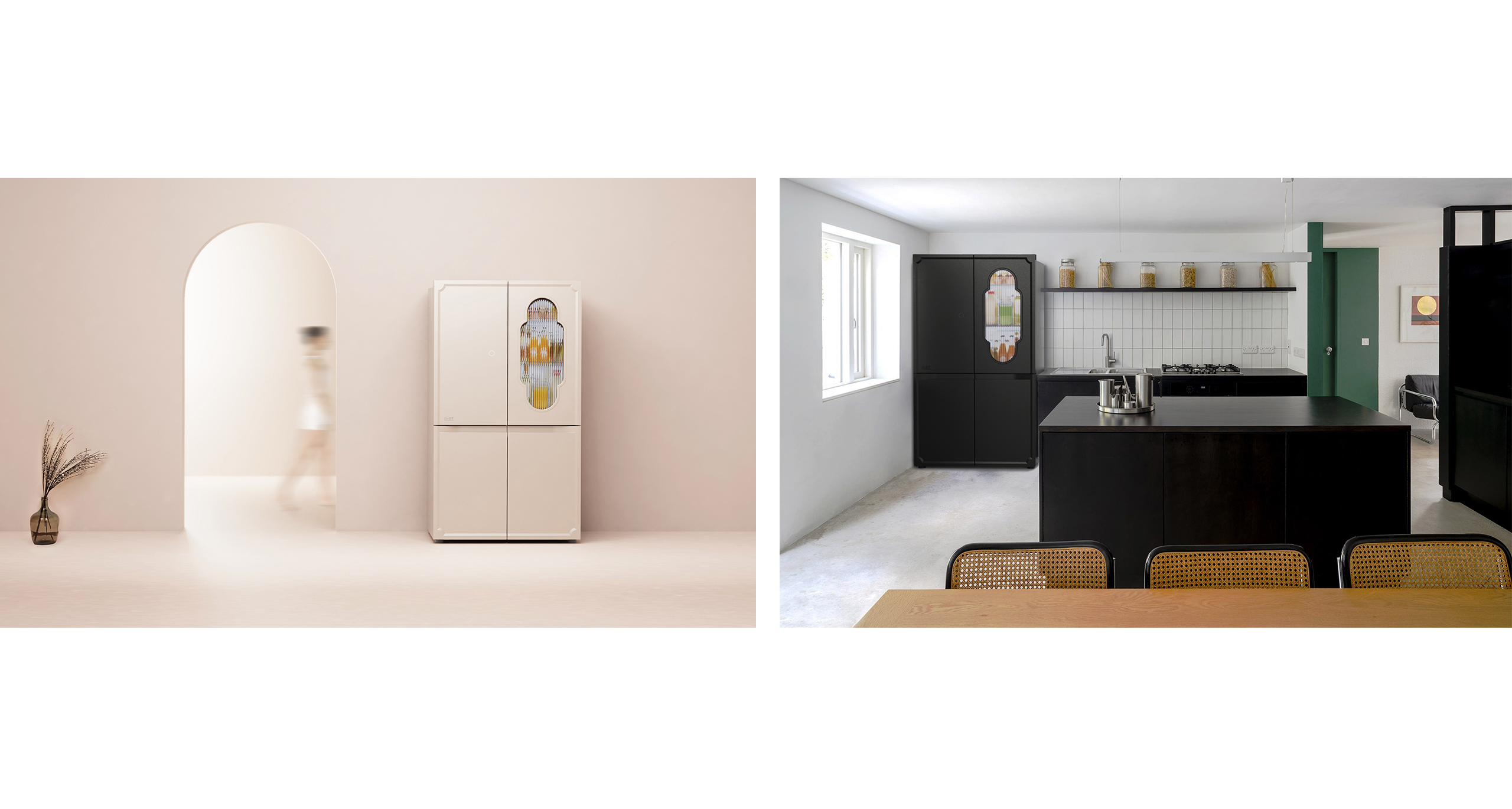 이 냉장고는 전통 한국 가구의 조형적 요소에서 영감을 받아 디자인되었습니다.