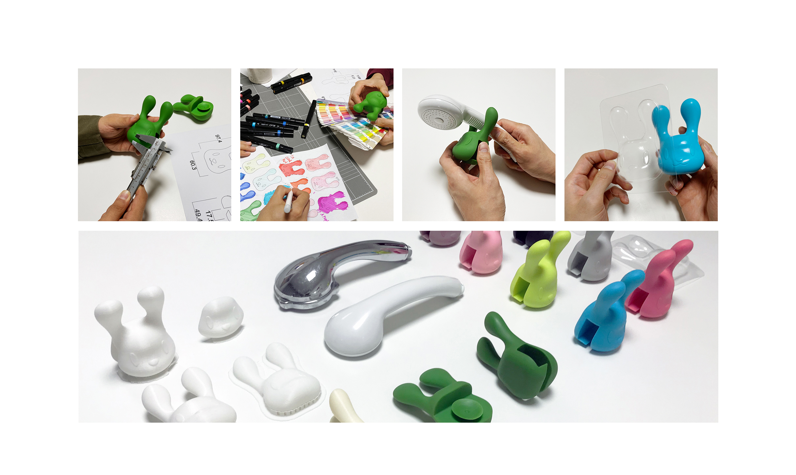 In order to create a shape that can naturally fix the shower head, it is designed with rabbit ears.