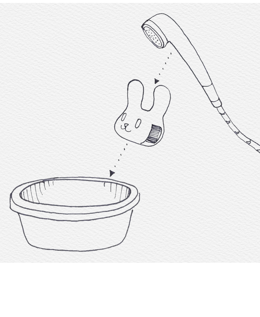 Bunny clip is an idea bathroom supplies that fixes the shower head to the basin, and can be usefully used for baby bathing, pet bathing, and laundry.
