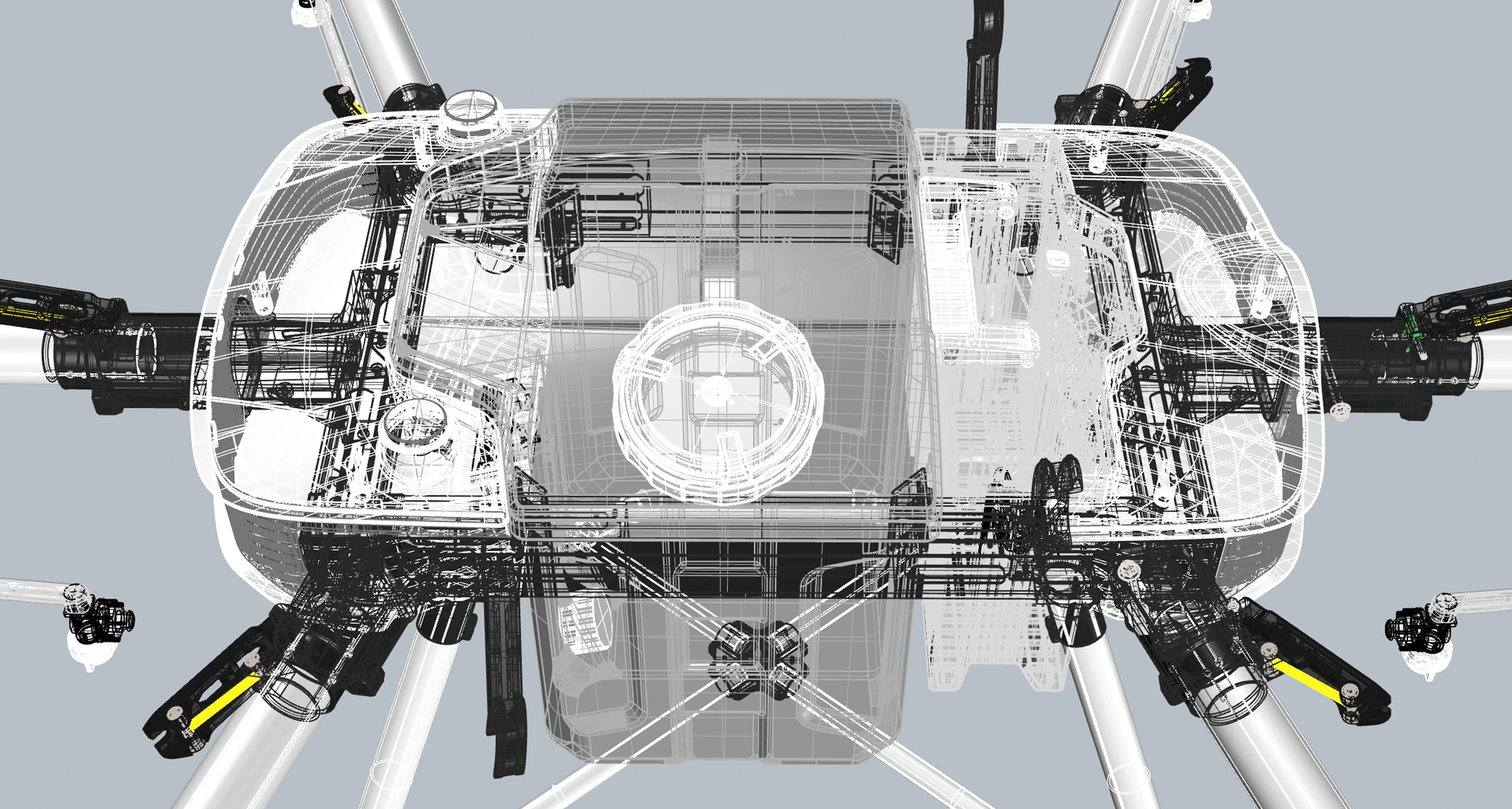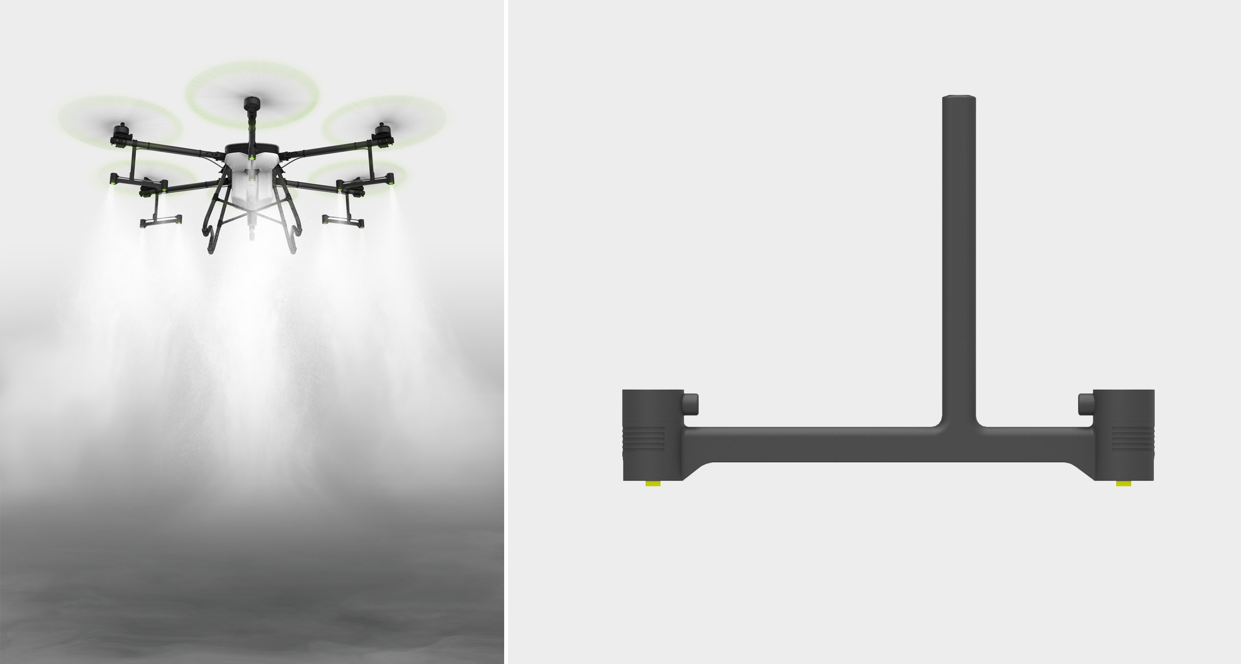 FR5는 최대 35리터의 액체를 운반하거나 공중 살포할 수 있는 농업용 드론입니다. 기능적 요구를 충실히 반영하면서도, 단순하고 정제된 형태로 기존 농기계에서 연상되는 투박한 이미지를 벗어나고자 했습니다.