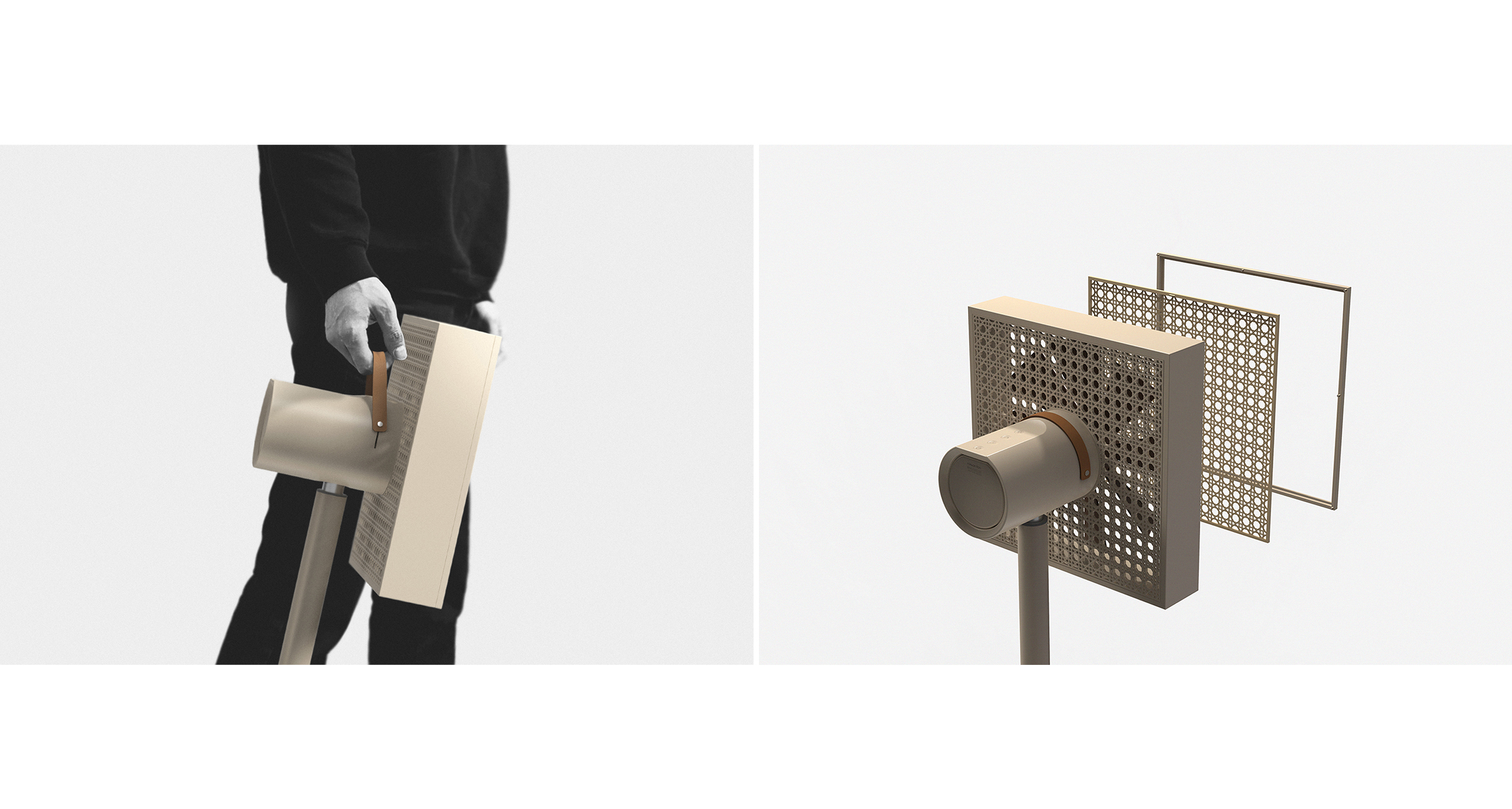 This wired/wireless fan was inspired by the texture and structure of rattan-style furniture.